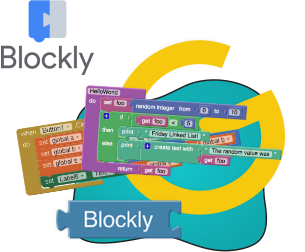 Blockly — это библиотека для создания среды визуального программирования, которая может быть встроена в произвольное web-приложение. Blockly включает в себя графический редактор, позволяющий составлять программы из блоков, и генераторы кода для подготовки исполнения программы в среде web-приложения.