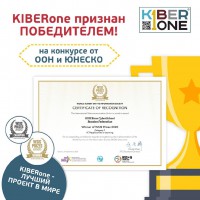 Первая Международная КиберШкола будущего для нового IT-поколения KIBERone стала мировым чемпионом в сфере цифрового образования для детей, по версии Генеральной Ассамблеи ООН и ЮНЕСКО по итогам результатов международного конкурса WSIS Prizes 2020. Конкурс проводится с 2012 года под эгидой ООН в рамках Всемирной встречи на высшем уровне по вопросам информационного общества (WSIS Forum).